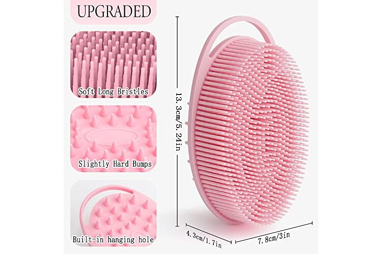 2 in 1 Body Scrubber Scalp Massager:Upgraded body scrubber. On one side is a soft body brush and on the other is a scalp brush. More comfortable, practical and convenient than traditional loofahs and bath sponges.