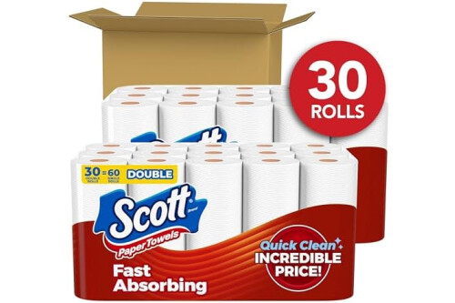 • WHAT’S INCLUDED — 30 Double Rolls of Scott Paper Towels, 108 sheets per roll (30 double rolls = 60 regular rolls)