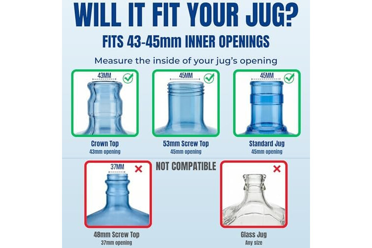 Just Flip, Fill & Fit, That's Simplicity at Its Best: The "on and off" with this 5 gallon water jug cover is so breezy, it's a blink-and-miss-it affair; It fits all water standard size water jugs (55mm top, and a 45mm opening), ensuring a snug and secure fit for 5-gallon jugs, making it ultra-convenient