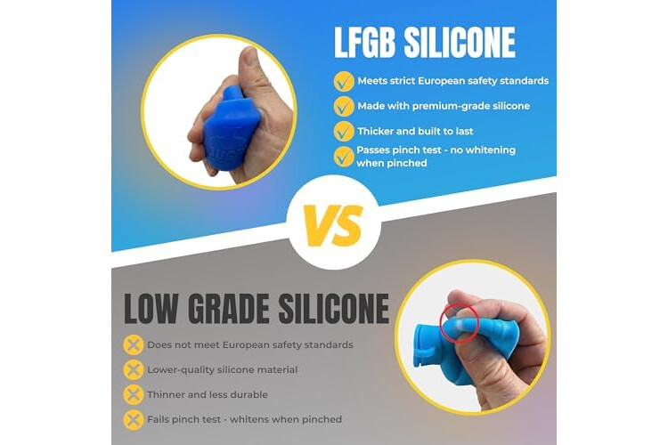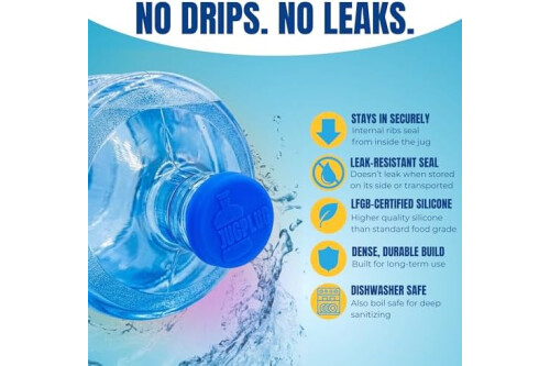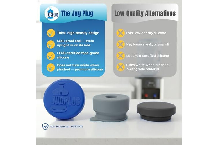 Seal & Secure – Flexible LFGB silicone cap fits snugly inside standard 3- and 5-gallon water jug openings to help reduce spills and keep water contained during storage, transport, or refilling