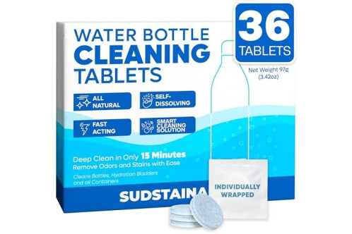 Sudstainables Water Bottle Cleaning Tablets – 36-Pack | Chlorine-Free & Odor-Control Formula | Water Bottle Cleaner, Flasks, Hydration Packs & Travel Mugs | Washer Tablets for Home, Hiking & Camping