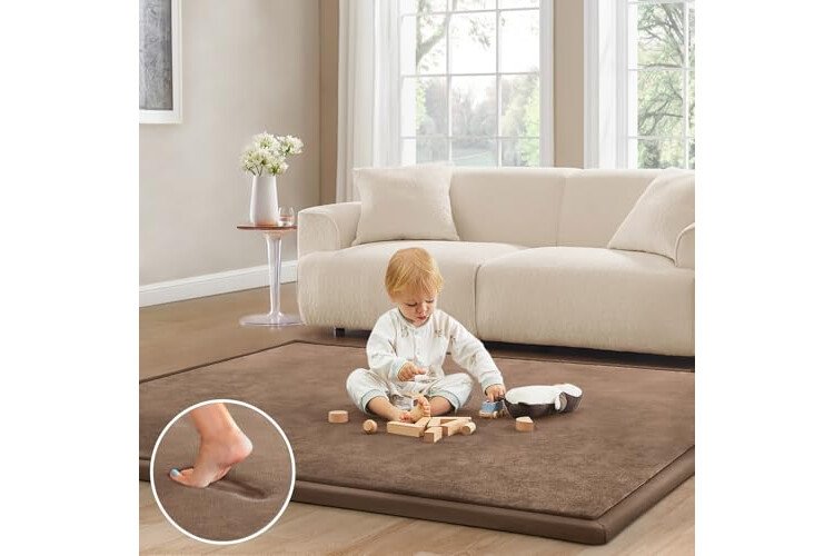 Baby Play Mat for Floor Tummy Time Mat Nursery Rug Muscle Mat Area Rug Playroom Rug Tatami Mat 39x59" Memory Foam 1.3" Thick Crawling Mat For Babies,Toddlers, Infants, Kids,Floor Mat,Coffee