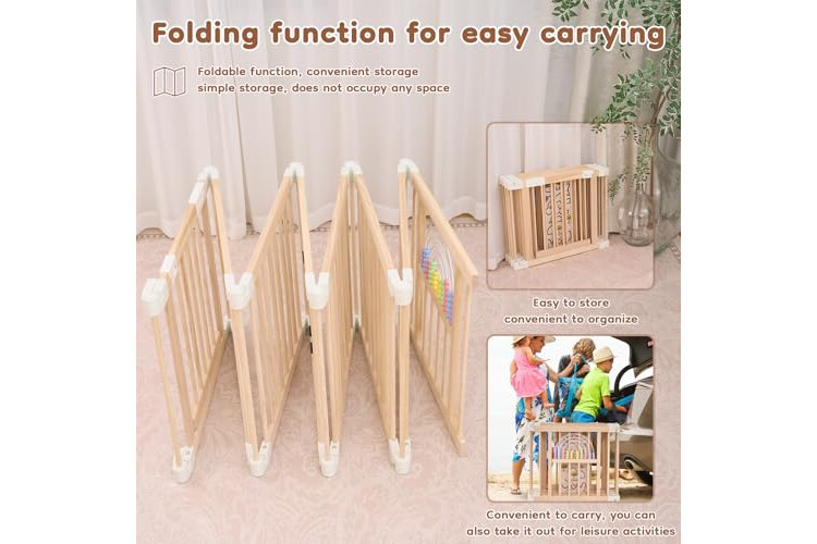 【Folding Function for Easy Carrying】Baby gate playpen has a foldable function, easy storage, simple storage, and does not take up any space. The play yard is easy to store and convenient to carry, so you can take baby fence play area out for fun.