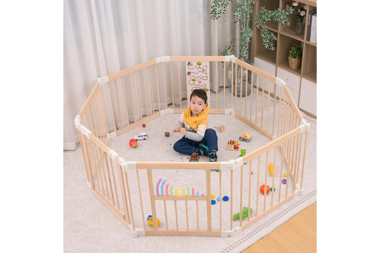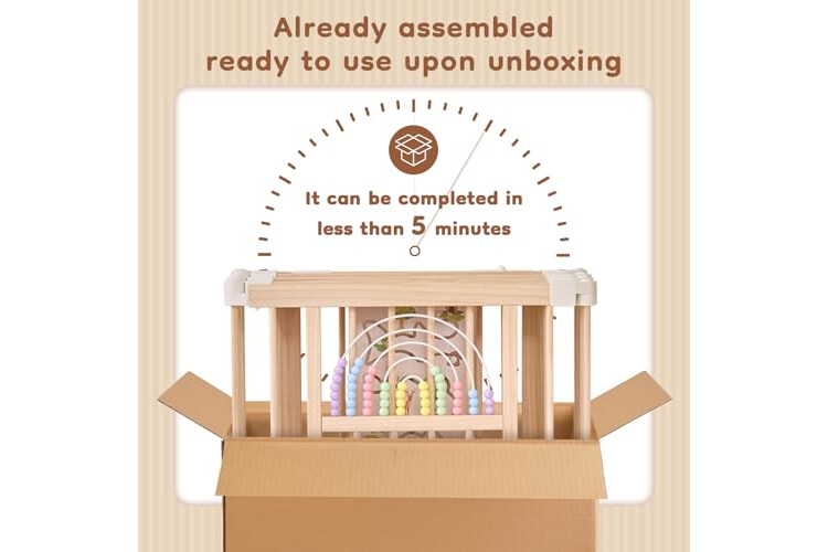 【Easy to Assemble】KOCINI baby playpen is fully assembled and designed for modern families and busy parents, ready to use right out of the box. The wood playpen initial setup of the wooden fence can be completed in less than 5 minutes, saving your time and experience without spending hours assembling parts.