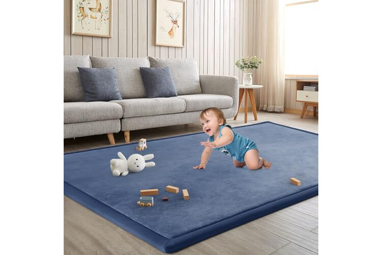 Baby Play Mat for Floor Nursery Rug Muscle Mat Area Rug Playroom Rug 59x79" Memory Foam 1.3" Thick Crawling Mat for Babies,Toddlers, Infants, Kids,Floor Mat(Blue)