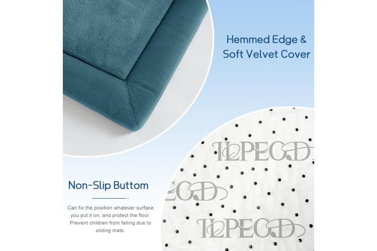 🐣SAFE & COMFY: Our baby play mat is made of 100% coral velvet material and filled with high-quality 3.5cm thick memory foam,eco-friendly and durable, providing a safe and comfortable play area for your babies, without worrying about them hurting themselves on hard floors.The surface of this playmat is velvet cover, which is not only soft and comfortable to touch, but also has a good cushioning effect.