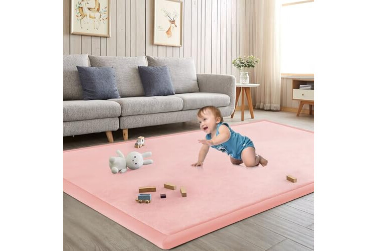 Baby Play Mat for Floor Nursery Rug Muscle Mat Area Rug Playroom Rug 79"x79" Memory Foam 1.3" Thick Crawling Mat for Babies,Toddlers, Infants, Kids(Pink)