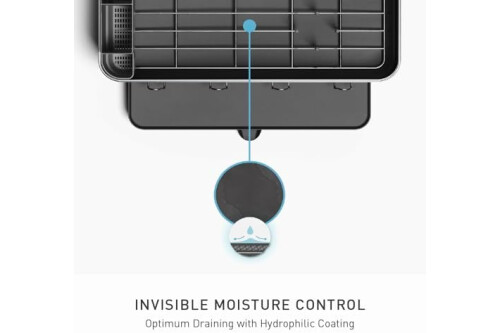ANTI-RESIDUE COATING - Hydrophilic coating on plastic tray causes water to spread so that it dries more quickly and prevents residue buildup. Very clean and efficient.