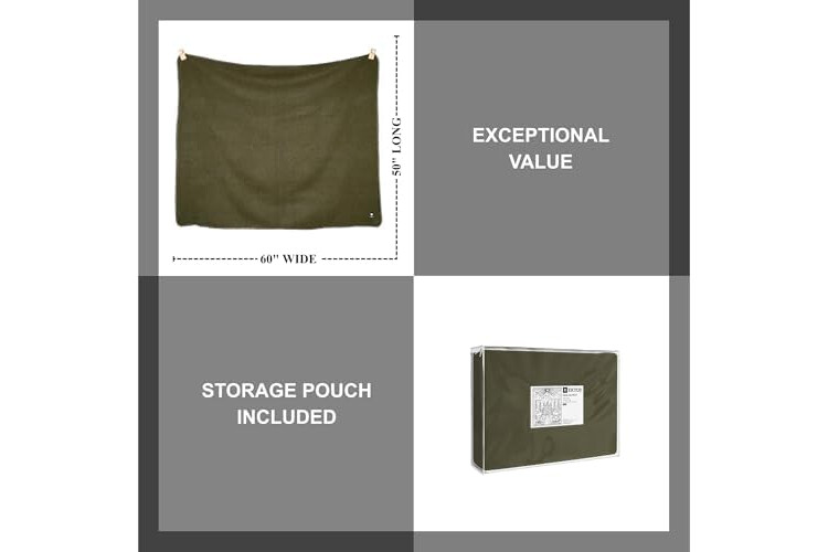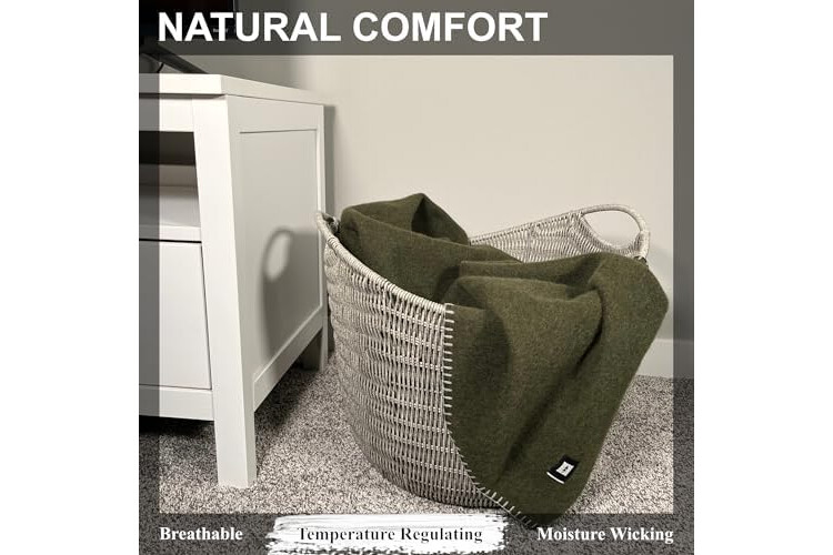 PREMIUM SPECS - Made from 24 micron virgin wool into a soft, odor-free, and washable wool blanket. Contains no recycled fibers. Includes a reusable storage pouch