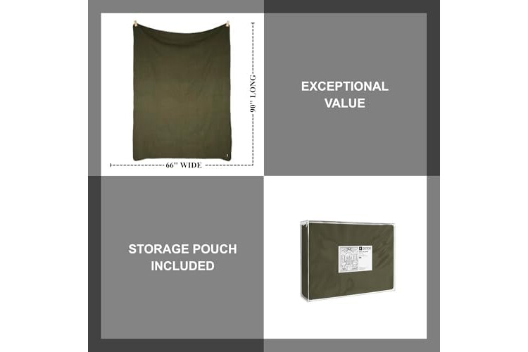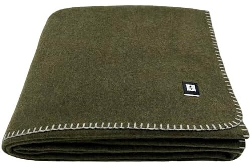 EKTOS 100% Virgin Wool Blanket, 90" x 66", Hunting Gear, Better Than Military Surplus (Olive Green, Twin Size)