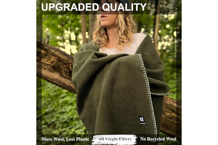 PREMIUM SPECS - Made from 24 micron virgin wool into a soft, odor-free, and washable wool blanket. Contains no recycled fibers. Includes a reusable storage pouch