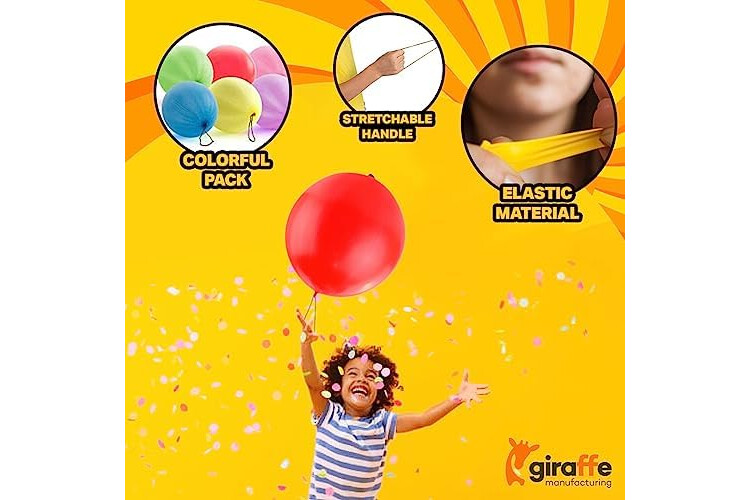 Round Shape Rubber Punch Balloons are Constructed with Latex Material which produces High Quality Balloon with String Which appears to be the best choice for kids and Toddlers willing to seek fun