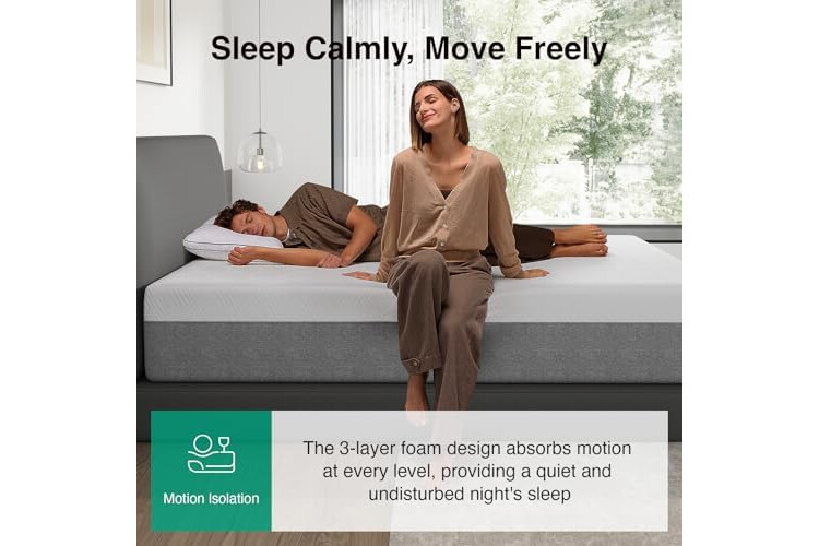 【DAMPENS PARTNER'S MOVEMENTS & REINFORCED EDGE SUPPORT】 4-layer mattress king construction absorbs movement in layers and reduces movement transfer. Whether you sleep alone or next to a partner, there is no disruption. Reinforced edge support frees you from feeling like you are going to ...