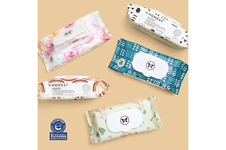 The Honest Company Clean Conscious Multi-Use Wipes Unscented Hypoallergenic Baby for Sensitive Skin 99% Water Plant-Based Compostable Geo Mood 288 Count