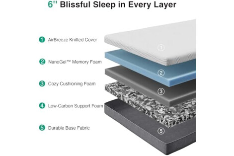 COOL & RELIEVES PAINS:The top layer of the full mattress is made with a thicker 2-inch gel foam for comfort, and the mattress cover can also increase breathability by 30%. The cooling gel layer takes away excess body heat while you sleep and brings a more cushioned feel to you, ensuring you stay asleep longer with this full size bed mattress.