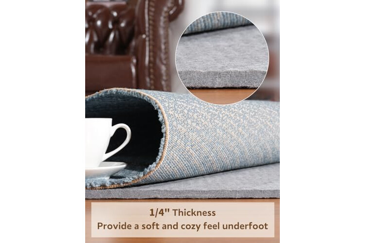 Add Cushioning & Comfort: A 1/8 inch rug pad adds extra cushion and feels softer underfoot. It makes walking or standing on carpet more comfortable and is ideal for most hard floors, including hardwood and tile.