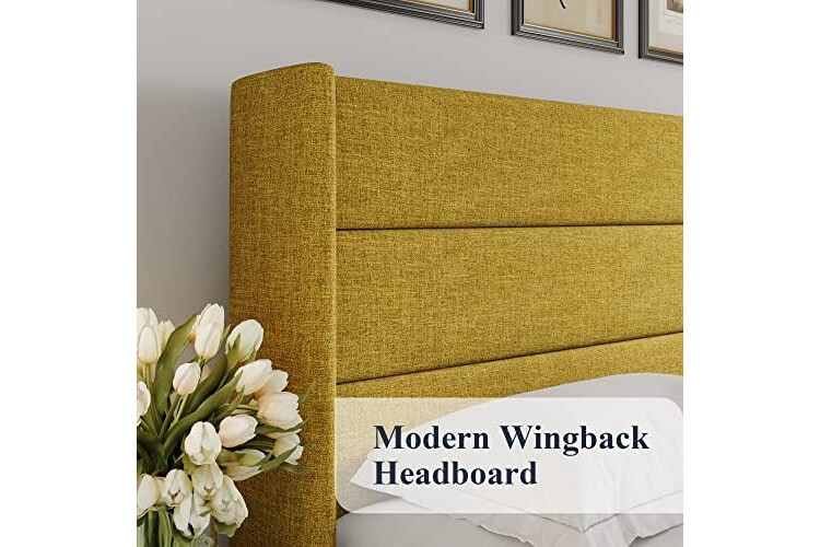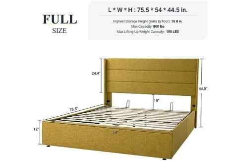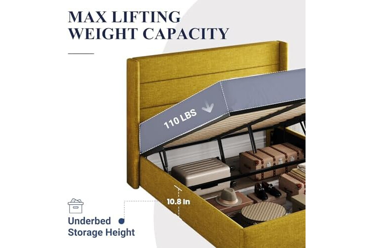 Allewie Full Size Lift Up Storage Bed, Modern Wingback Headboard, Hydraulic Support, No Box Spring Needed, Olive Yellow