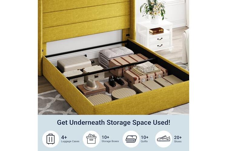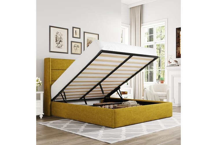 Space-Saving Storage: With its lifting up storage feature, this bed frame provides ample space to store extra bedding, clothing, shoes, and other items, especially helpful for smaller bedrooms or apartments where storage space is limited