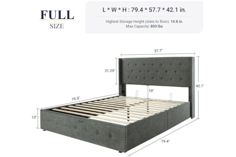 Allewie Full Size Lift Up Storage Bed, Button Tufted Headboard with Wingback, Hydraulic Support, No Box Spring Needed, Dark Grey