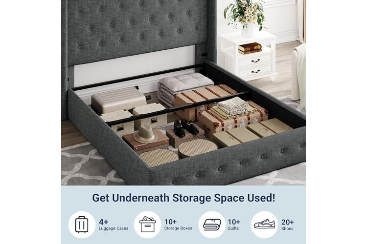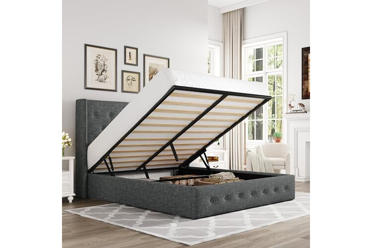 Space-Saving Storage: With its lifting up storage feature, this bed frame provides ample space to store extra bedding, clothing, shoes, and other items, especially helpful for smaller bedrooms or apartments where storage space is limited
