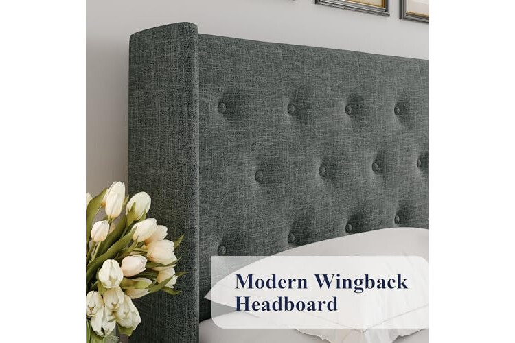 Elegant Headboard: High wingback headboard adds elegant aesthetics to your bedroom. Button tufted pattern illuminates stylish and minimalist trends