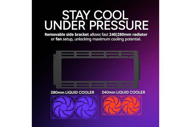 Stay Cool Under Pressure: Experience liquid cooling performance with side-mounted support for 240mm/280mm, ensuring maximum thermal efficiency.