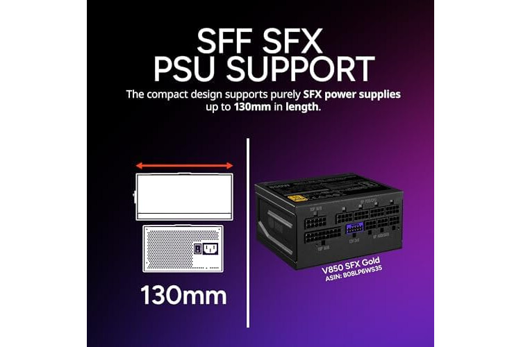 Compact SFX PSU Support: The small form factor design accommodates an SFX PSU with a length of up to 130mm.