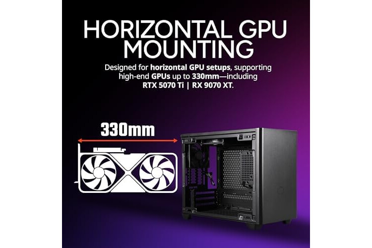 Cooler Master NR200 Mini-ITX PC Case Ready, Horizontal GPU Mount, Designed Ready Nvidia RTX 5070 Ti | AMD RX 9070 XT, SFX PSU – Ready to Install, Airflow Up To 6 Fans, Vented Panels, DIY