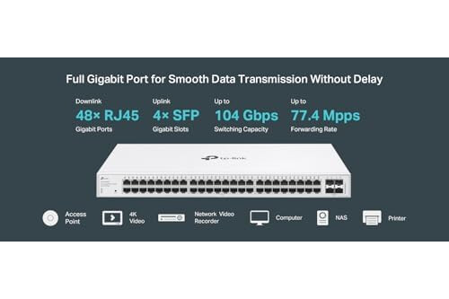TP-Link Festa FS352G 52 Port Gigabit Smart Managed Network Switch - 48 RJ45 ports & 4 SFP slots, Free Cloud Access, Static Routing, Vlan, IGMP Snooping, rack-mountable, fanless, Does not work w/ Omada