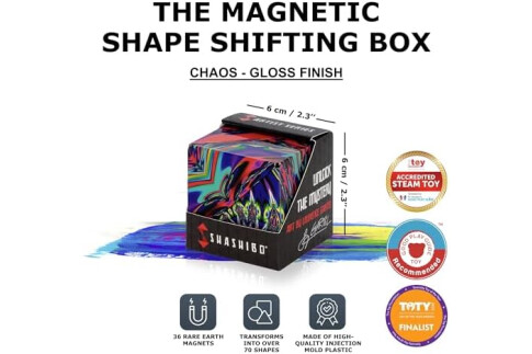 Shashibo Shape Shifting Box - Award-Winning STEM Fidget Toy with Ultra Strong Magnets - Puzzle Cube Transforms Into 100+ Shapes, Perfect Sensory Gift for Kids, Teens, and Adults (Chaos)