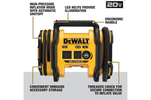 DEWALT Tire Inflator Portable Air Compressor 20V MAX, Car Air Pump with Automatic Shut Off, LED Light, Tool Only (DCC020IB)
