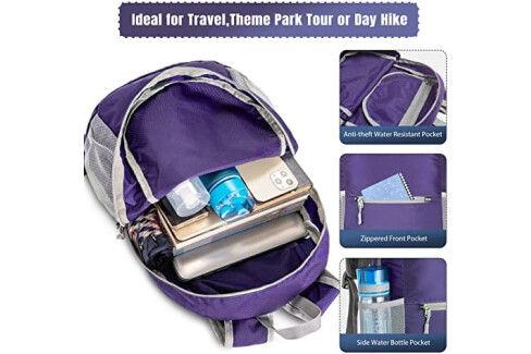 ZOMAKE Ultra Lightweight Hiking Backpack 20L, Packable Small Backpacks Water Resistant Daypack for Women Men(Purple)
