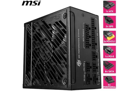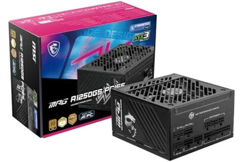 MSI MPG A1250GS PCIE5, Fully Modular Gaming 1250W Power Supply, 80+ Gold, Dual 12V-2x6 Cables, Server-Grade Capacitor, ATX 3.1 & PCIe 5.1 Ready, Low-Noise, Semi Digital, 10 Year Warranty