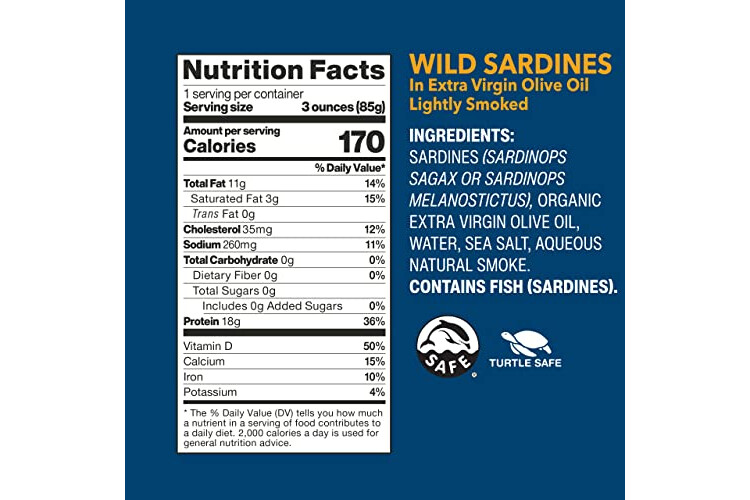 SUSTAINABLY SOURCED- We use sustainable and selective harvesting methods to catch our sardines to help eliminate bycatch. From the North Pacific.