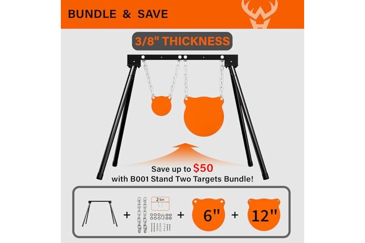 Perfect Combination: Package includes 1 x Shooting Target Stand & 2 x Chain Mounting Hardware Kits & 3/8" thick - 6" + 12" Gong Targets, ideal for various firearms at different shooting distances