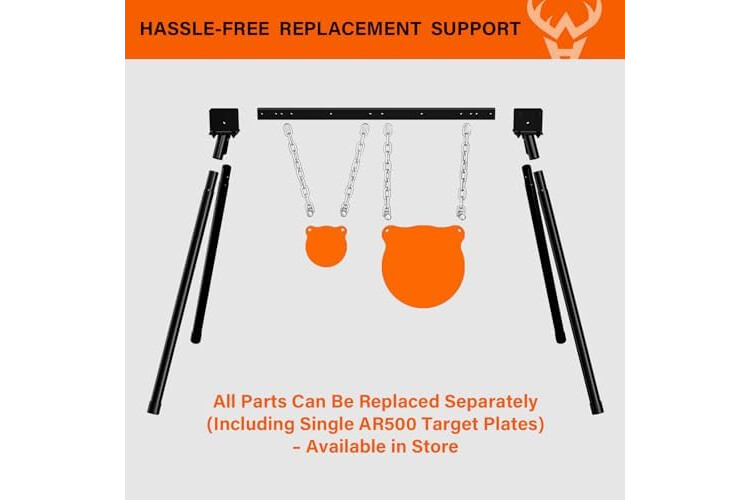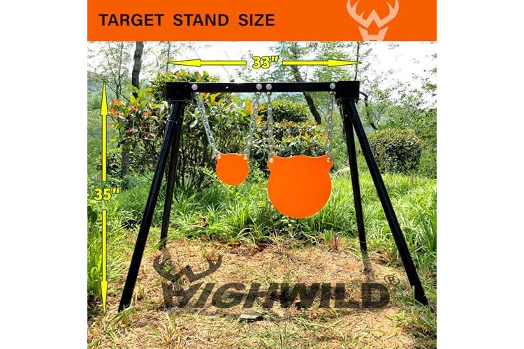 Target Stand: Heavy duty steel construction with Rust-Proof powder coat finish, replacement parts readily available if any components wear out; Compactly designed steel target stand ensures easy transport and stability on uneven terrain