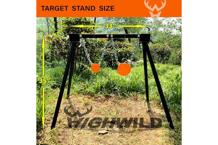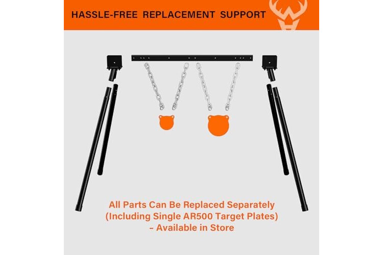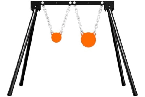 Target Stand: Heavy duty steel construction with Rust-Proof powder coat finish, replacement parts readily available if any components wear out; Compactly designed steel target stand ensures easy transport and stability on uneven terrain