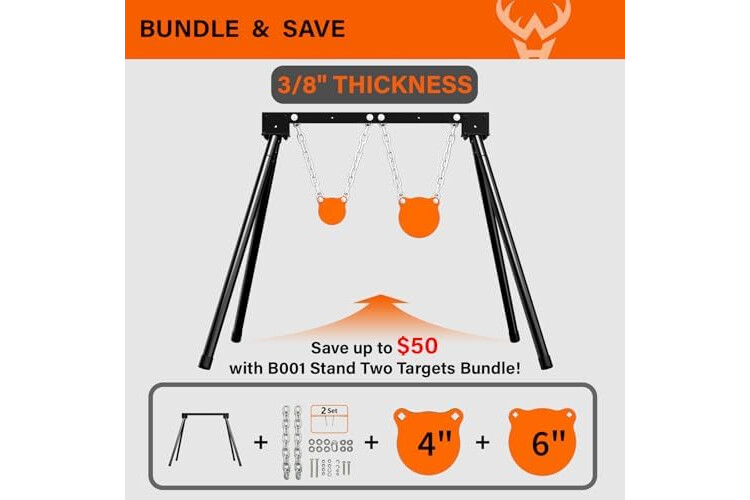 Perfect Combination: Package includes 1 x Shooting Target Stand & 2 x Chain Mounting Hardware Kits & 3/8" thick - 4" + 6" Gong Targets, ideal for various firearms at different shooting distances