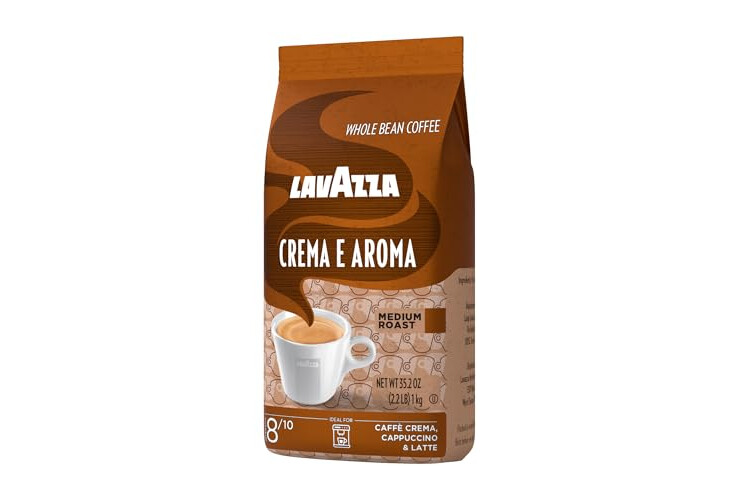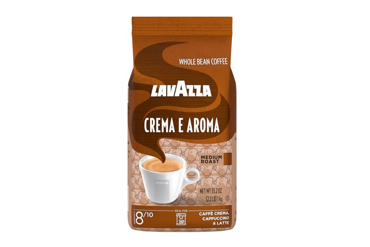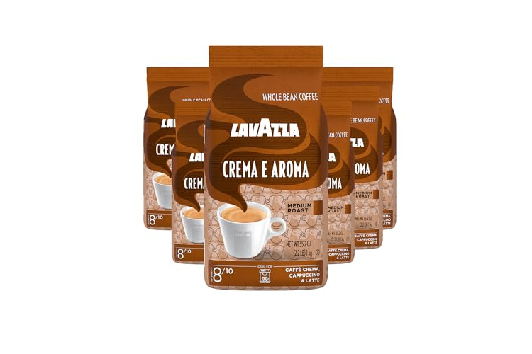 Lavazza Crema e Aroma Whole Bean Coffee, Medium Roast, Arabica and Robusta Blend, 2.2 lb Bag (Pack of 6)