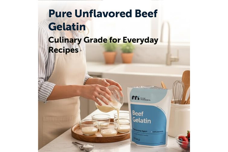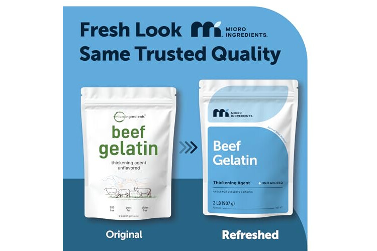 Micro Ingredients offers a bulk 2 pound supply of top grade beef gelatin powder, grass fed and pasture raised bovine source, natural unflavored thickening agent, great for any cooking or baking recipes.