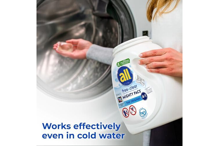 These hypoallergenic all free and clear mighty pacs are safe to use in any washing machine including high efficiency (HE) and at any water temperature.