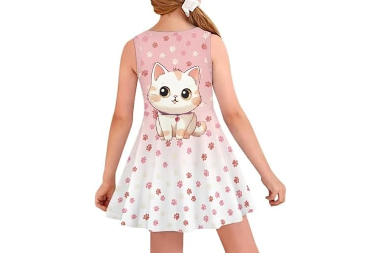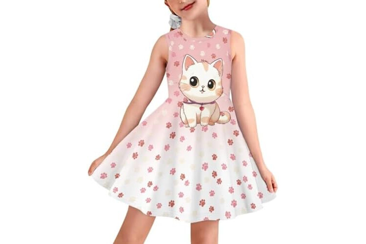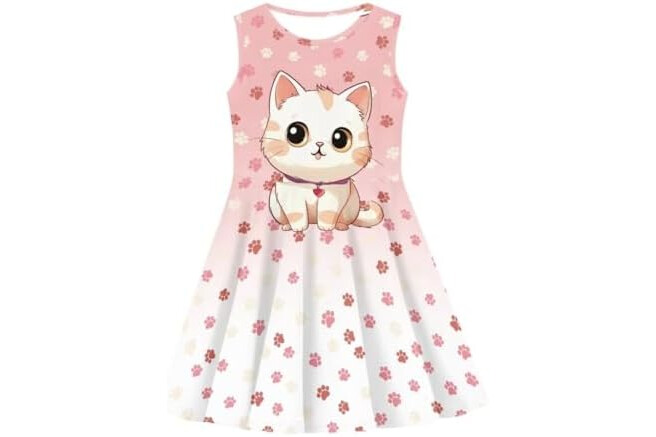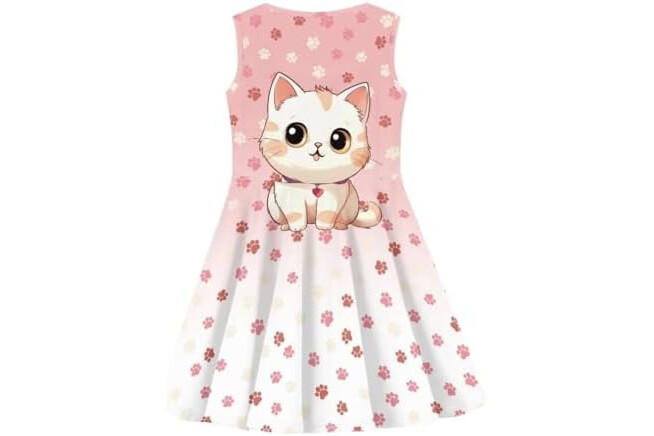 Cat Dress for Girls 9-10 Kawaii Girl Spring Dress A Line Kids Clothes Girls Pink Girls Party Dresses School Outfit for Summer