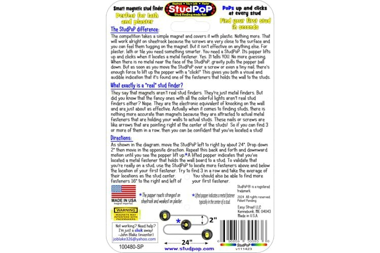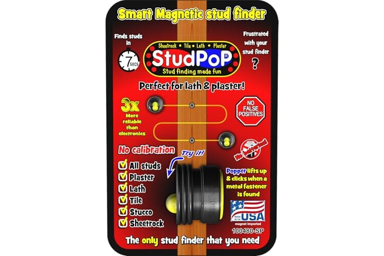 StudPoP® Original Smart Magnetic Stud Finder – No Batteries, No Calibration, 3X More Reliable, Perfect for Lath & Plaster, Metal Studs – Visual & Audible Indicator, Simple & Fun to Use – 1" Magnet