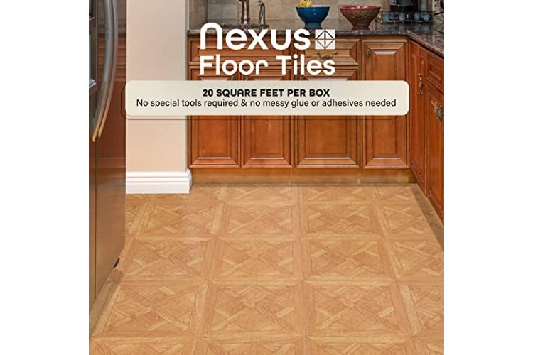 Nexus Vinyl Tiles: Refresh your home for a low cost and no hassle with the Nexus Vinyl Floor Tiles. Our tiles can be used in any room in your home including the kitchen, dining room, bedrooms, bathrooms, foyers, and basements. No messy glue or adhesives needed. Includes 20 vinyl tiles.