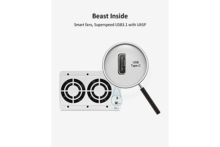 Intelligent temperature control low noise fan. The fan speed is automatically adjusted with the temperature of the hard drive.