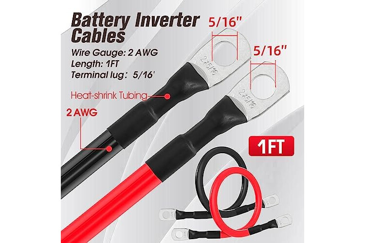 • Wire Gauge: 2 AWG; Length: 1FT; Terminal lugs: 5/16"