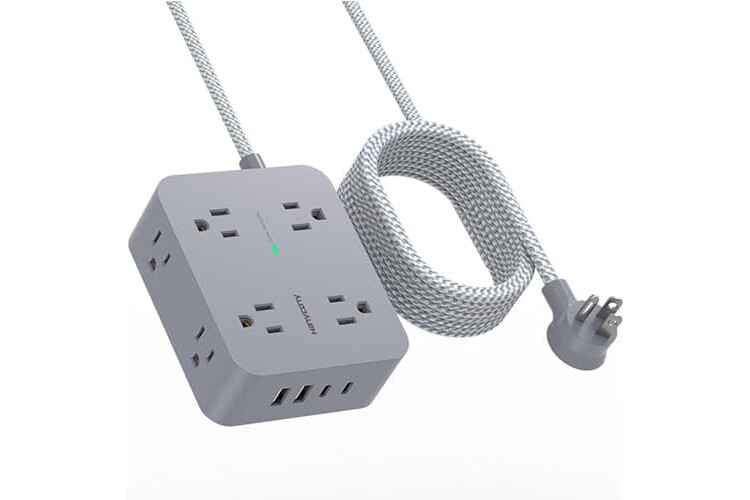 【10 Ft Extension Cord with Flat Plug】- The low profile flat plug fits easily in tight spaces; and the right angle flat plug design prevents bottom plug blocking; the 10 Ft braided extension cord is made of pure copper, which has better current carrying capacity (15A), is not easy to deform, durable and more safety; the two mounting holes on back allows this power strip to be securely installed in various applications.