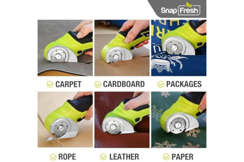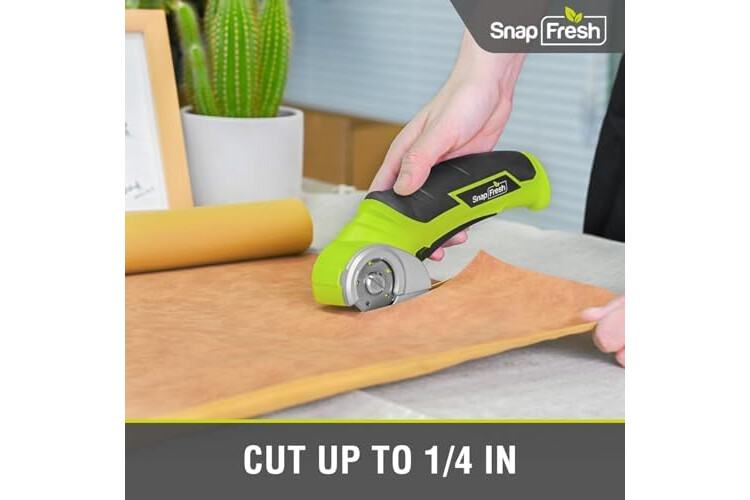 【Extraordinary Versatility】 -SnapFresh cordless electric scissors is perfect for cutting cardboard, leather, plastic, canvas, carpet, wallpaper, and more, handling materials up to 1/4” thick.It ensures low-noise, efficient cutting that goes far beyond traditional scissors.