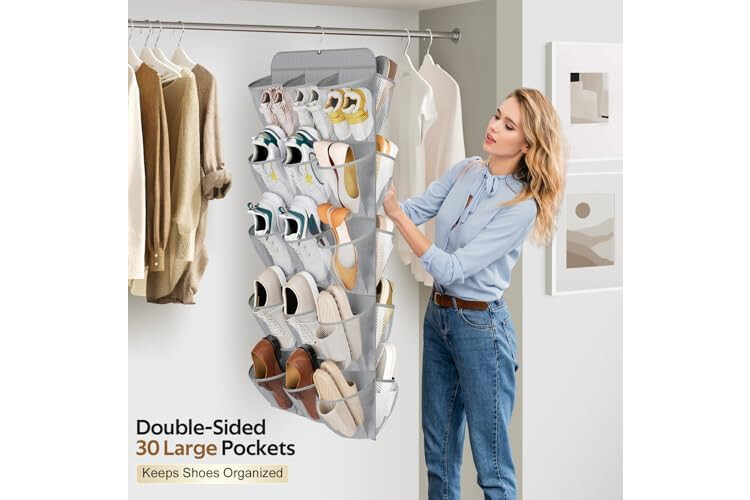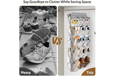【Dual sides roomy pockets】This hanging shoe rack has 30 pockets in total, can holds kinds of shoes like sandals slippers, tennis shoes, sneakers, it is the great item to transform your closet into an amazing storage area for your shoes;
