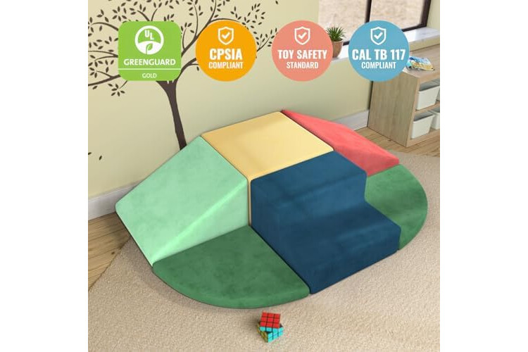 🛡️【High-Density Foam for Safe Support】Built with durable EPE foam for firm support that doesn’t collapse under pressure. Provides cushioned protection during falls and active play, giving parents peace of mind.